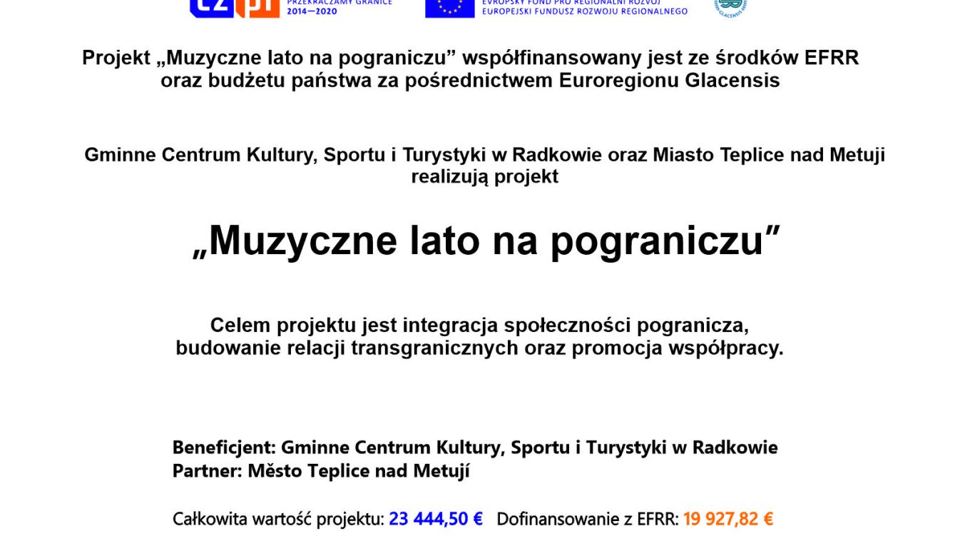 Czytaj dalejJuż wkrótce, czyli pod koniec czerwca br. Gminne Centrum Kultury, Sportu i Turystyki w Radkowie wraz z miastem Teplice nad