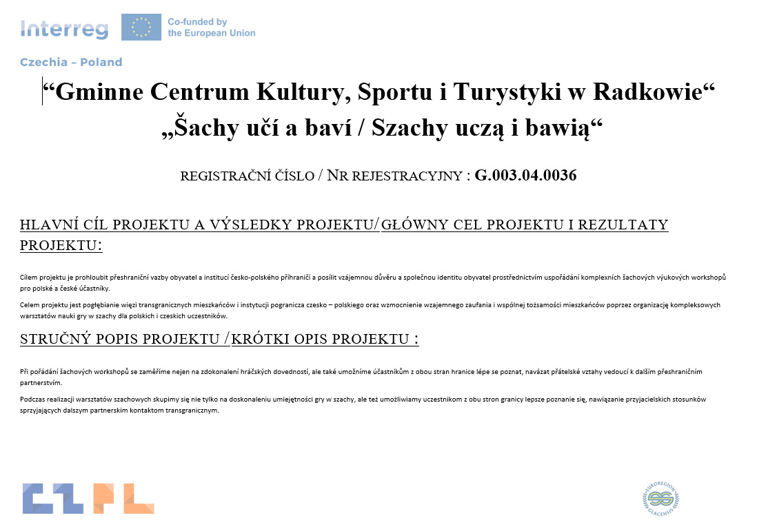 Czytaj dalejGminne Centrum Kultury, Sportu i Turystyki w Radkowie wraz z czeskim partnerem miastem Teplice n. Metuji, rozpoczyna realizację projektu pn.