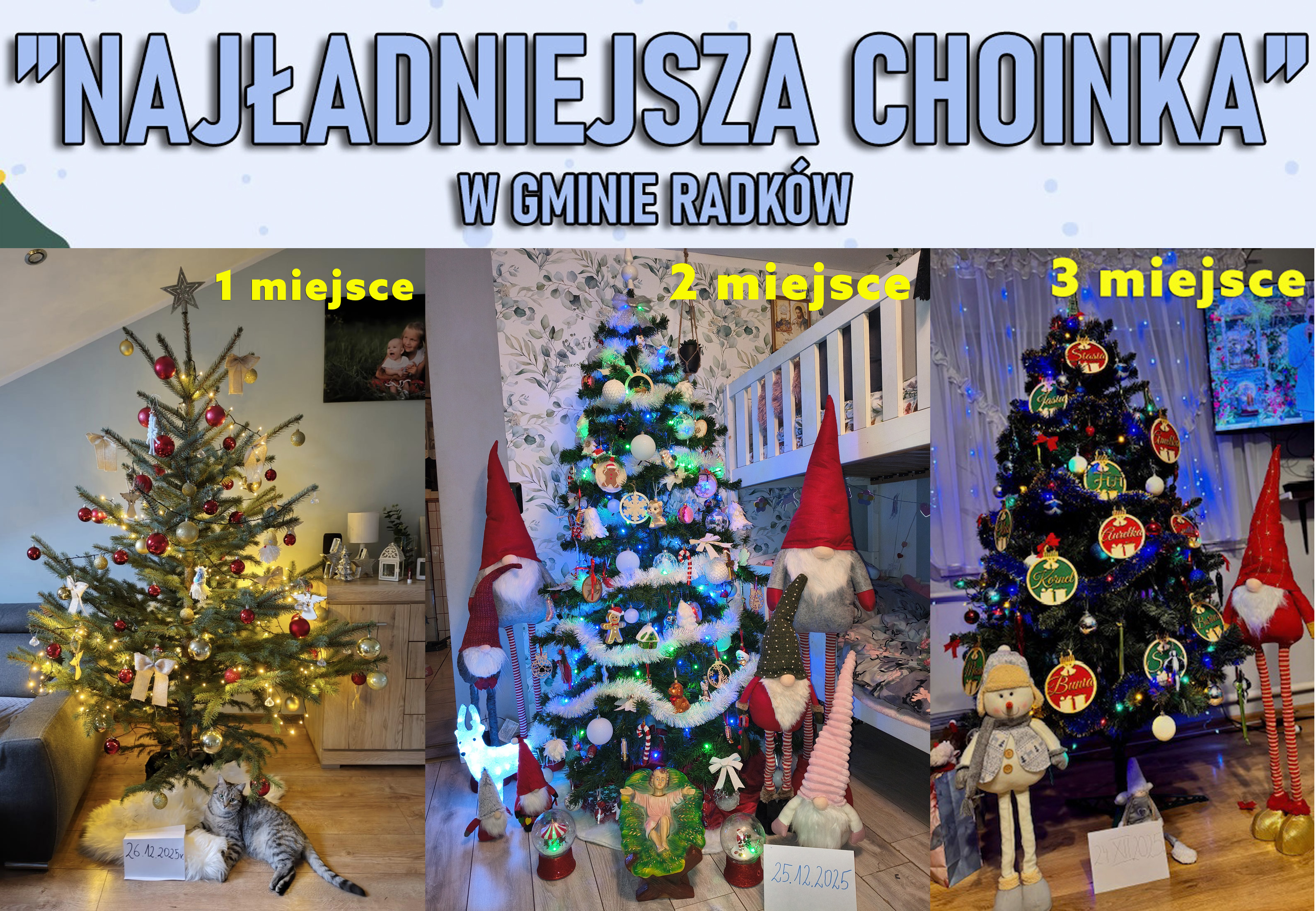 Czytaj dalejW dniu dzisiejszym (8.01.2026) rozstrzygnęliśmy konkurs na Najładniejszą Choinkę Gminy Radków. Oto laureaci: 1 miejsce – Barbara FUNTASZ, 2 miejsce
