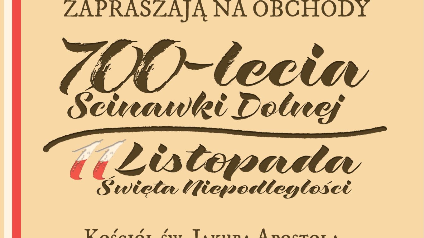 Czytaj dalejSerdecznie zapraszamy do wspólnego uczestnictwa w 700-leciu Ścinawki Dolnej oraz Gminnych obchodów Narodowego Święta Niepodległości. Wszystkie informacja na plakacie poniżej.